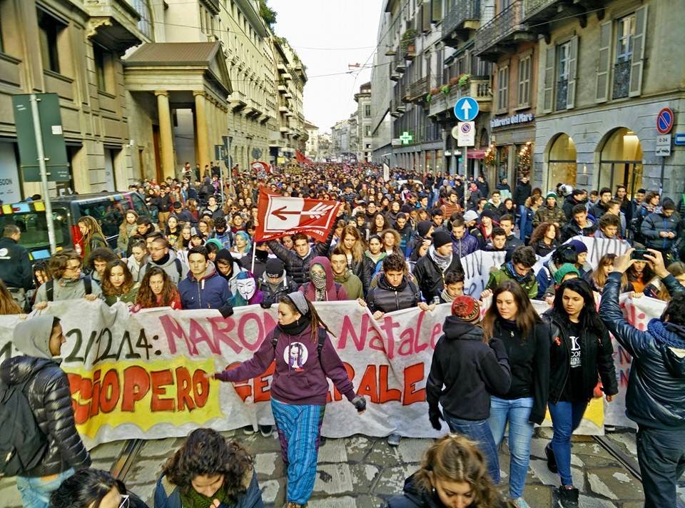 Oggi 12 dicembre, migliaia di studenti lombardi sono tornati in piazza a Milano e a Brescia in occasione dello sciopero generale.